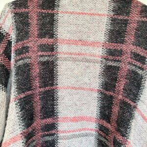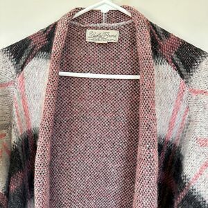 LUCKY BRAND Women Size M Pink Wool Mohair Blend Brush Plaid Open Front Cardigan Sweater