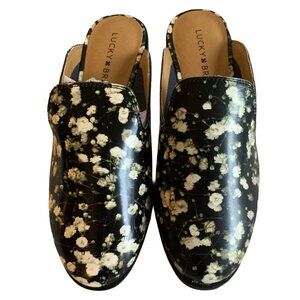 LUCKY BRAND Womens' Black Floral Cristley Leather Slip-On Mules Size 5.5