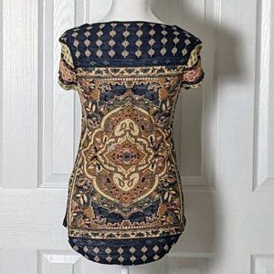 LUCKY BRAND Women's Cap Sleeves Top Blouse Size XS Multi Color Print