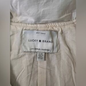 This Lucky Brand jacket is the perfect addition to your wardrobe. Made with cotton outer shell material, this quilted jacket is both stylish and comfortable. It features an ivory color and is available in size large.