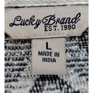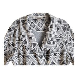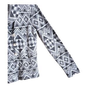 LUCKY BRAND Women's Size L Blazer Jacket - Knit, Collared, Button Up, Aztec Pattern, Black & White, 65% Cotton, 32% Polyester