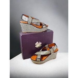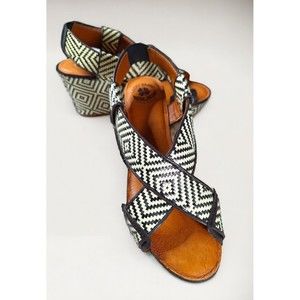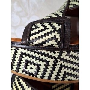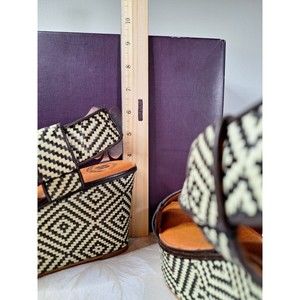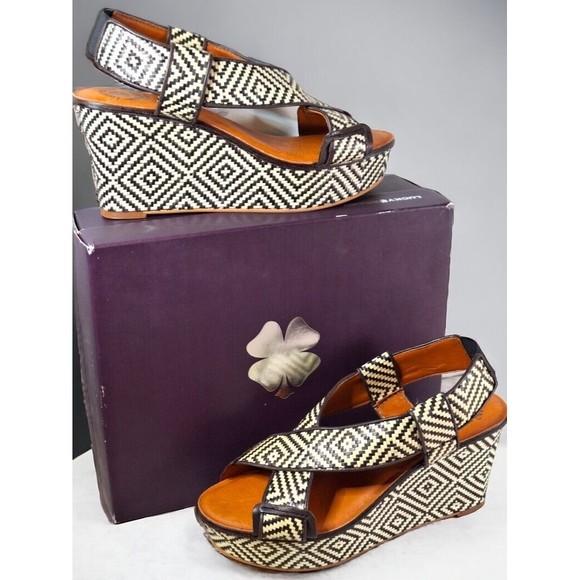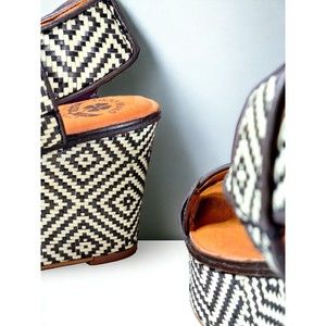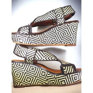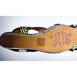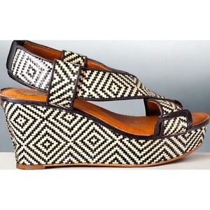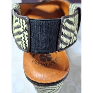 Step into summer with these stylish Lucky Brand wedge platform sandals. The beautiful multicolor Gun metal argyle/diamond pattern is sure to catch the eye. Slip-on makes them easy to wear, and the leather upper material ensures durability.