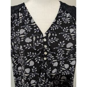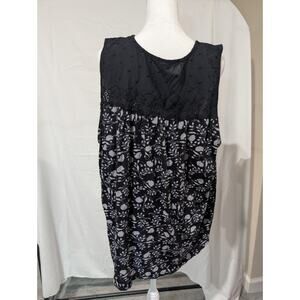LUCKY BRAND Women’s Plus V-Neck Tank Top BLACK FLORAL Eyelet Plus Size 2X XXL