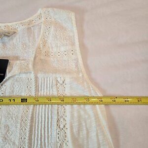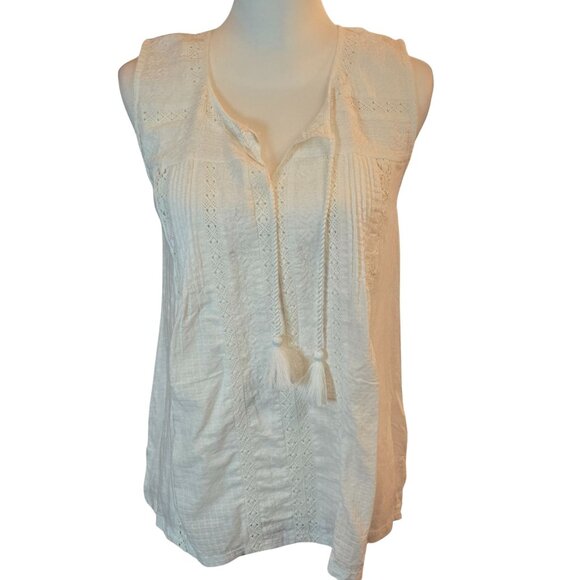 LUCKY BRAND Women's Sleeveless Sheer Top Crochet Accent Shirt Sz: M White