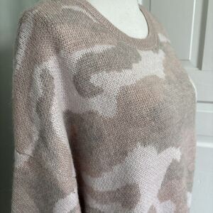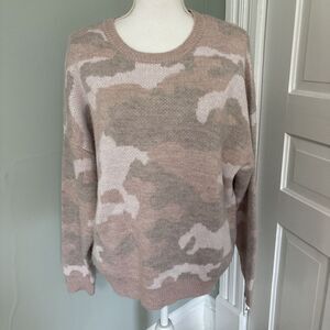 LUCKY BRAND Wool Blend Pink Multi Camo Crew Knit Sweater Womens Size XL
