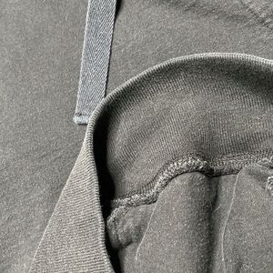 Size: XL Measurements are pictured. Great condition. 90s era Lucky Brand wide sleeve deep-V neck hoodie. Thick 100% cotton. Color is dark gray - the lighter colored photos represent the color (some pics came out too dark).