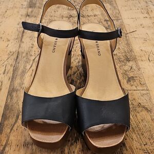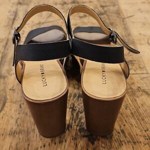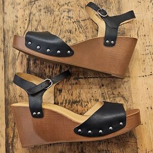 LUCKY BRAND Zashti Black Wedge Leather Studded Slingback Sandal Size 10 NWOT