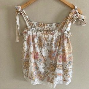 LUCKY BRAND cream floral easy tie boho top