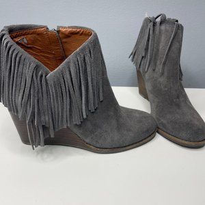 LUCKY BRAND grey suede fringe yachin boots size 7.5