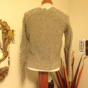 NWOT. Super cozy sweater- thicker knit. Brownish/creme/tan-ish colors mixed! Looks cute over a blue button up shirt sticking out at the end of sweater. Still deciding to keep or sell. MAKE AN OFFER.