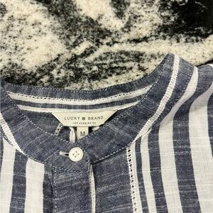 LUCKY BRAND loose fit vertical stripes long sleeve button down summer top