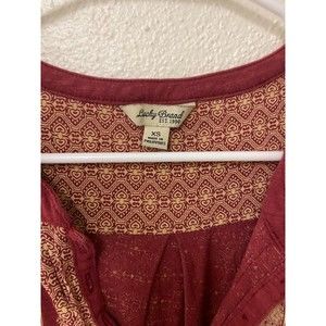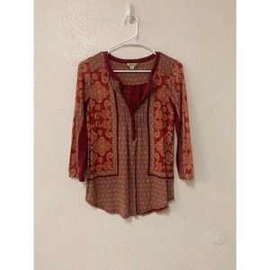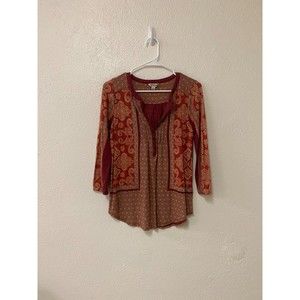 LUCKY BRAND red boho prairie indie henna print western 3/4 sleeve top size XS