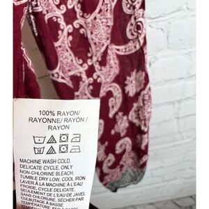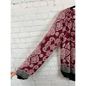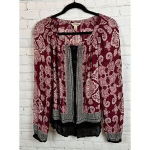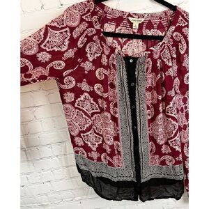 LUCKY BRAND red white black rayon button down blouse top shirt size S