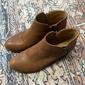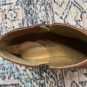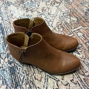 LUCKY BRAND Burklee Leather Ankle Boots Zippers Size 8 Brown Booties
