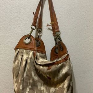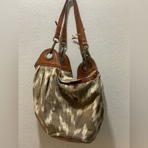 LUCKY BRAND Canvas Linen Ikat Boho leather trim Shoulder Bag