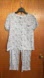 Comfortable floral pajama set with gray, blue, & pink hues. Short-sleeve top and matching capri style pants. In excellent pre-owned condition. Button up pajama shirt, and elastic drawstring waistband pants.