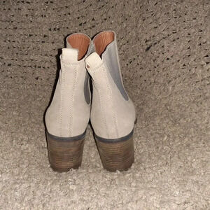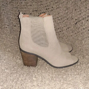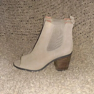 LUCKY BRAND-Kassidy-Chelsea Ankle Boot-Tan Nubuck-Peep Toe-Sz 36.5-6.5-Near Mint