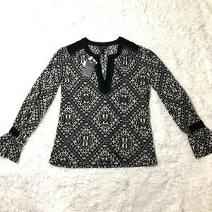 LUCKY BRAND Longsleeved printed top felt v neck XS
