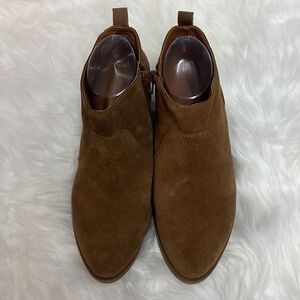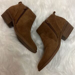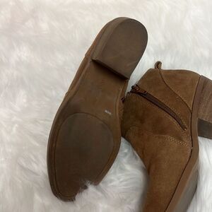 LUCKY BRAND Suede Toffee Ankle Booties Zip Sides Womens 8 D18