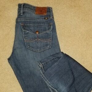 Excellent condition boot cut with snap flap back pockets 99% cotton 1% spandex make these super comfy! Only worn a few times.