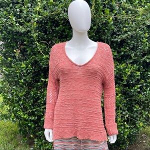 LUCKY Brand Crochet Rust Scoop Neck LongSleeve Layering Swe…
