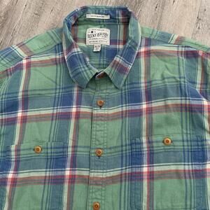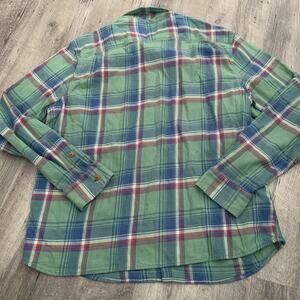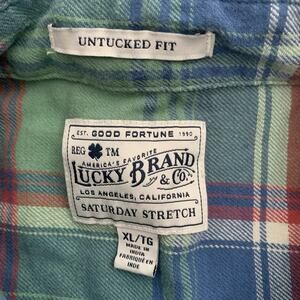 LUCKY Brand Flannel Shirt Mens XL Saturday Stretch Green Blue Plaid Untucked Fit