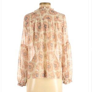 LUCKY Brand Floral Cream & Pink Long Sleeve Blouse Size XS