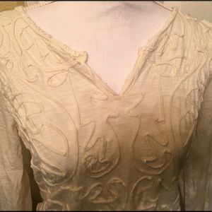 LUCKY Brand Ivory Top Sz M approx 24” Long, 18” across, flat. Has couple micro dots in front hardly noticeable. Long sleeves, texture pattern front solid back. EUC