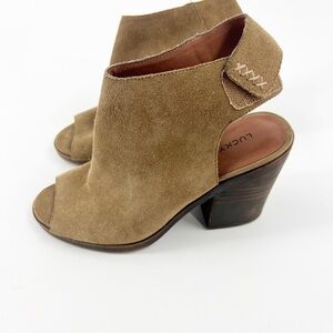 ✅ LUCKY Brand Odenah Sling Back Peep Toe Booties SIZE 6.5 TAN