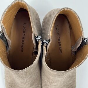 LUCKY Brand Suede Tan Perforated Laser Cut Ankle Boots Leather Size 7.5