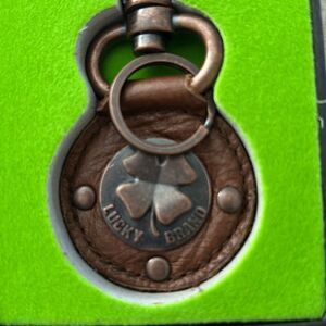 Lucky brands, brown leather keychain. Comes in gift box has one little rivet on the back that is missing otherwise an excellent condition.