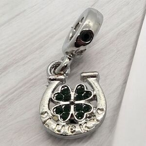 LUCKY Green Shamrock St Patrick's Day 3D Bracelet Charm Silver Jewelry Ireland