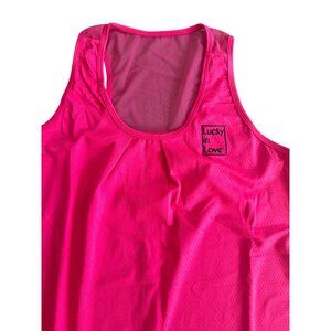LUCKY IN LOVE Pink Racerback Mesh Tank Top Size Medium NEW New with tags