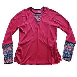 Tags:Tennis pickleball golf activewear quick dry sports top flattering ruched sides hot pink long sleeve winter sports