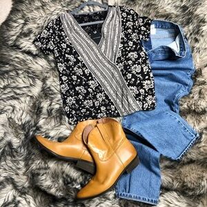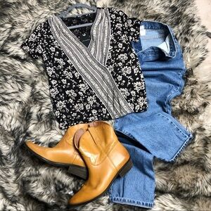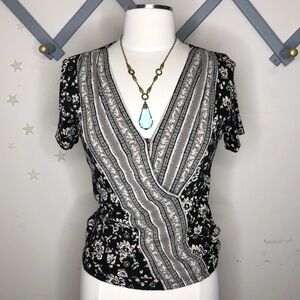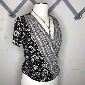 LUCKY brand bohemian floral faux wrap blouse