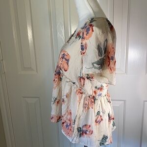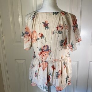 LUCKY brand flutter sleeve tannish-Pink blush floral blouse, size medium