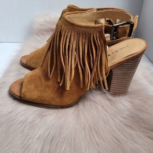 LUCKY BRAND Suede Open Toe Fringe sandals Size 8