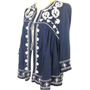 LUCKY BRAND EMBROIDERED SWING JACKET TIE FRONT