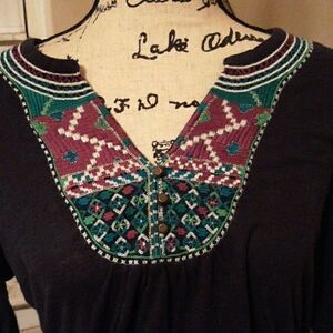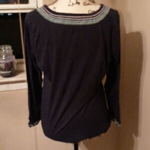 LUCKY BRAND NAVY BLUE BOHO LONG SLEEVE TOP M