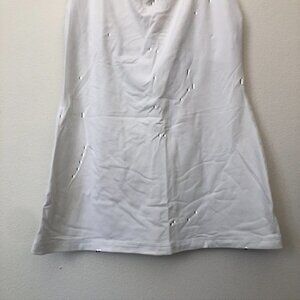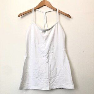 Solid white tank top. Sleeveless. Racerback. Has built in shelf bra (no padding, wireless). Activewear active neutral athleisure workout running jogging gym. Good condition overall, slightly fuzzy/pilly