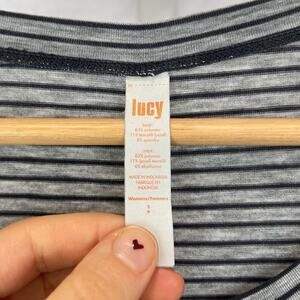 LUCY Activewear Size S Striped Drop Shoulder Long Sleeve Top Gray