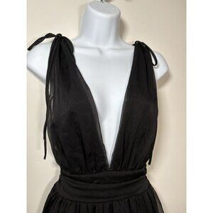LUCY IN THE SKY Black Plunge V-Neck Fit and Flare Black Mini Dress Size Medium