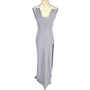 LUCY IN THE SKY Maxi Formal Dress Size Small Lavendar Glitter Sheath Stretch