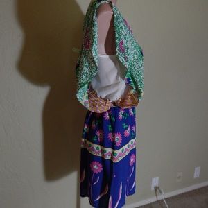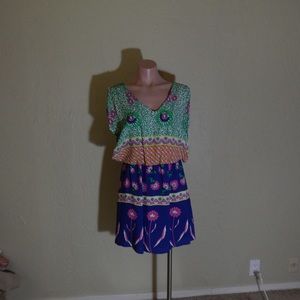 SPRING IS IN THE AIR...VIBRANT COLORS, V NECK FRONT AND BACK, WING TYPE SLEEVES, ELASTIC WAIST. EXCELLENT CONDITION.