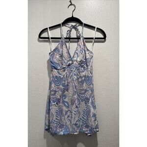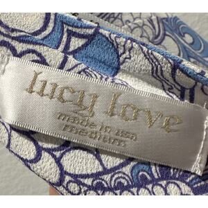 LUCY LOVE Size Medium Blue White Paisley Print Open Tie Back Y2K Look Retro Boho