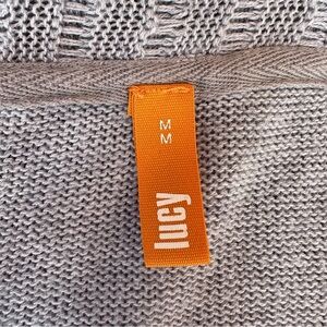 Cozy and stylish! This beautiful LUCY brand cardigan in a soft gray features a unique ribbed and ruffled design that adds texture and flair. It has a chic open-front drape that makes it perfect for layering over your favorite tops. Ideal for adding a touch of elegance and warmth to any outfit.