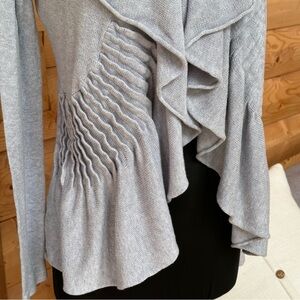 LUCY Gray Ribbed Ruffle Open Front Cardigan | Drape Cozy Knit Size Med