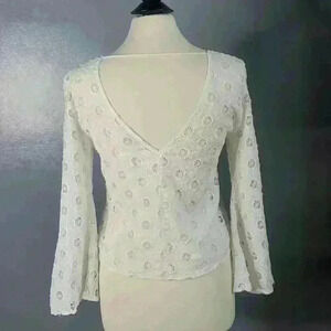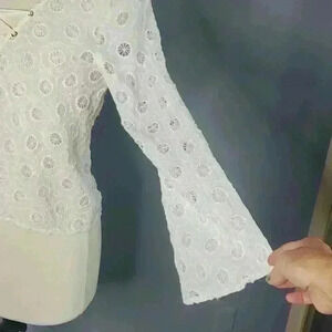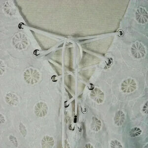 LUCY Paris Julie Top White Boho Eyelet Lace-up Bell Sleeve Shirt sz M