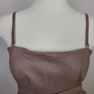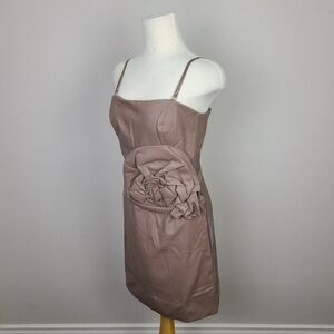 LUCY Paris Taupe Tan Faux Leather Rosette Waist Bodycon Sheath Mini Dress Large
