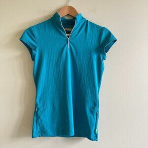 LUCY TEAL SHORT SLEEVE HALF ZIP UP ATHLETIC TOP WOMENS SIZE S ZIPPED POCKETS